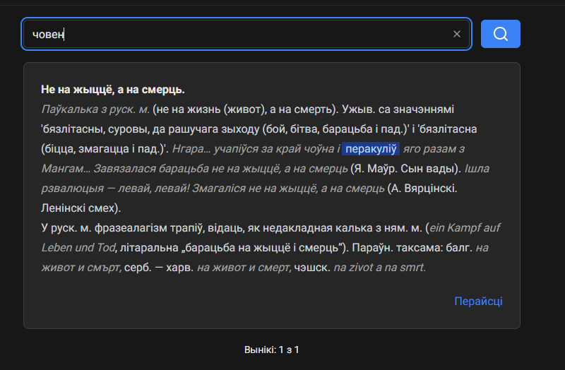 Быў распаршаны Тлумачальны слоўнік беларускай літаратурнай мовы 2022 года (дзякуй Вербуму за гэта). Цяпер на сайце ёсць 5500 фразеалагізмаў і выразаў. Пошук працуе адразу па ўсім (і па этымалагічным слоўніку Лепешава і па выразам з ТСБЛМ).